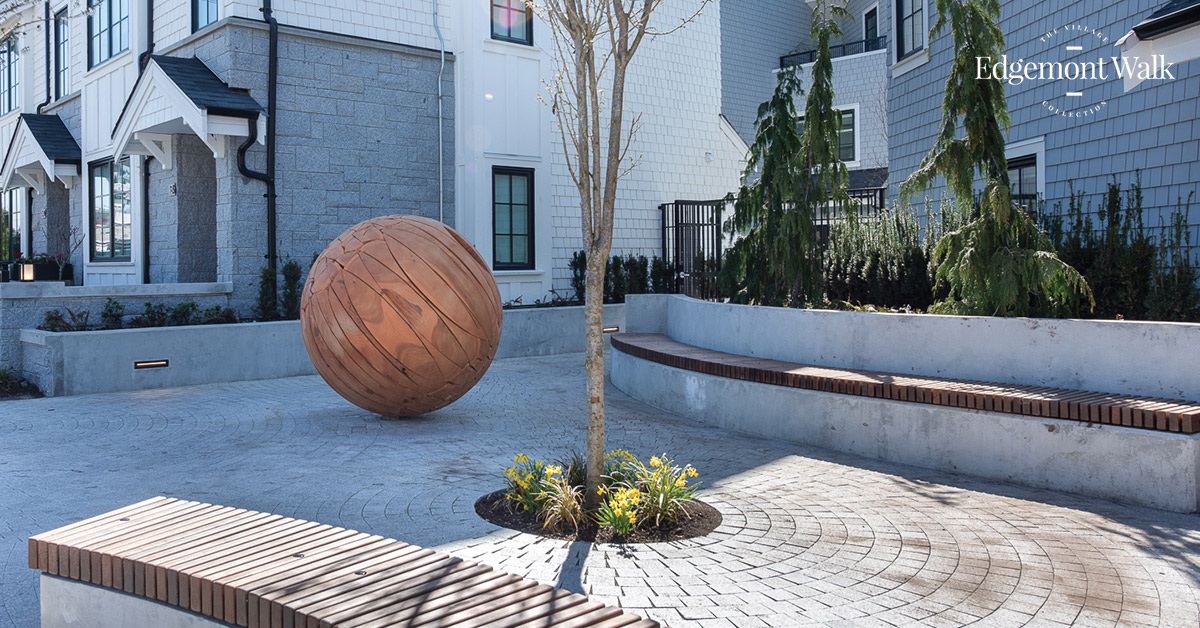 The Illuminated Shattered Sphere was created exclusively from western red cedar, wood that grew only a few yards away from where the sphere now resides in Edgemont Walk’s public courtyard. This northern gateway into Edgemont Village will provide a gathering place where neighbours can meet and be neighbourly!