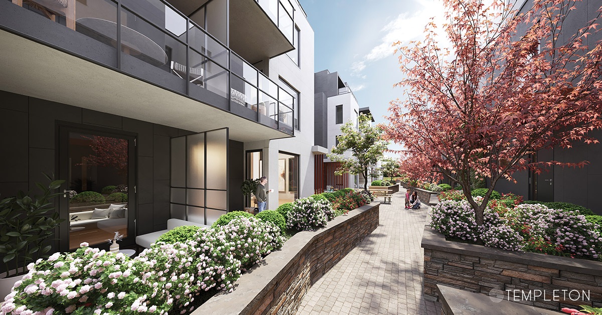In line with Passive House standards, Templeton will provide residents with up to 90 percent savings on heating costs, ultra-quiet and eco-friendly homes, and healthier indoor air quality. All homes will be positioned around a landscaped courtyard, providing verdant views and a sense of tranquility within the centre of the community. Buyers are invited to choose from spacious one-, two- and three-storey homes complete with flex spaces, clever design features, and private interior balconies and patios.