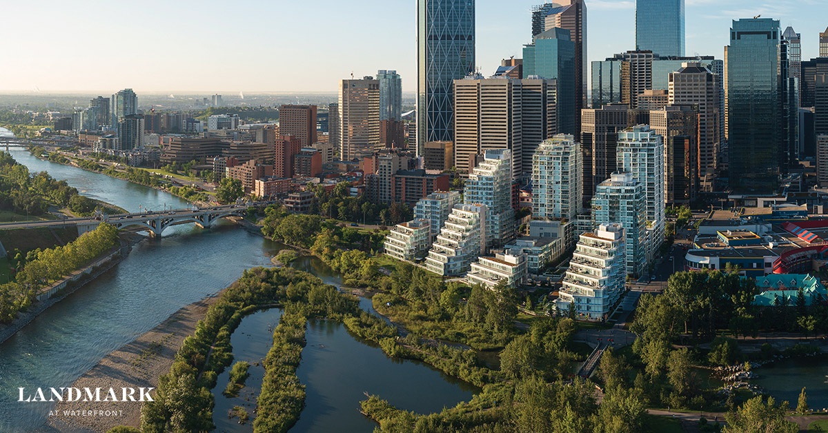 Overlooking Prince’s Island Park and the Bow River, a pair of terraced buildings elevate the luxury already apparent at Waterfront. These residences stand out not only because of a heightened living experience within, but also for their nature-encased location on the water’s edge.